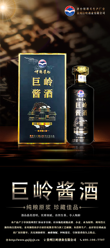 贵州巨岭酒业有限公司,座落于闻名世界的古镇,国酒之乡“茅台镇”。与“国酒茅台”共享得天独厚的气候、土壤、水源、以及微生物群等自然资源;《巨岭酒业》老作坊前身“巨岭烧坊”,经过多年的传承,秉承先辈们代代相传的古法酿造工艺,历经几代人的延续和酿酒发展,奠定了《巨岭酒业》发展的坚实基础。 作为贵州茅台镇本土规模企业,《巨岭酒业》拥有传统发酵窖池200余口,年产优质酱香白酒近2600多吨,储酒能力12000多吨;并配有3条现代化包装生产线;公司现有职工300多名,有酿酒师15人,技术人员22人,本科以上学历管理人员12人,大专学历工作人员78人,是茅台古镇酱酒传承的白酒知名企业。 《巨岭酒业》励精图治与精益求精的发展理念,已成长为行业认可、社会公认的“规模酿酒企业”,酒业协会副会长单位”和“爱心企业”。 公司现在拥有:《巨岭酱酒》,《岭台》,《玉岭烧坊》,《酒缘》《情满壶》等上百个品牌产品,公司注重品牌发展,以《巨岭酱酒》为品牌核心,以个性化定制和尊贵封藏为营销模式,制定出“一核两柱”的销售模式?!毒蘖虢淳啤纷魑放浦魈澹隼┱故谐〉呐磐废确?,全国布局,点线结合,网状布局,包括《巨岭》系列产品.... |